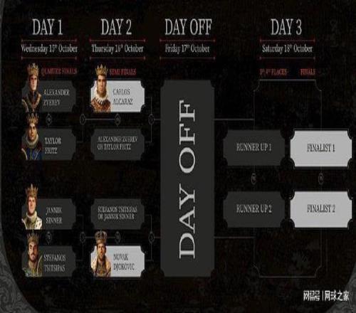 另外,沙特六王大滿貫表演賽,北京時間昨晚公布了比賽的賽程。10月15日:茲維列夫vs弗里茨,辛納vs西西帕斯;10月16日:阿爾卡拉斯vs茲維列夫與弗里茨之間的勝者,德約科維奇vs辛納與西西帕斯之間的勝者;10月17日:休賽;10月18日:三四名決賽和冠亞軍決賽。