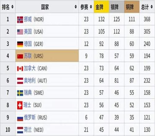 (冬奧會(huì)歷史獎(jiǎng)牌榜,圖:Wiki)▼