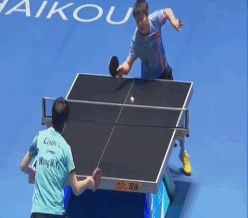 暫停回來,王曼昱開球,發球搶攻的戰術沒有奏效,雙方陷入遠臺對拉。中間的一次球擦網,沒有影響到王曼昱,但她之后自己的一次失誤,將這一局拱手相讓。孫穎莎大比分2-1領先。