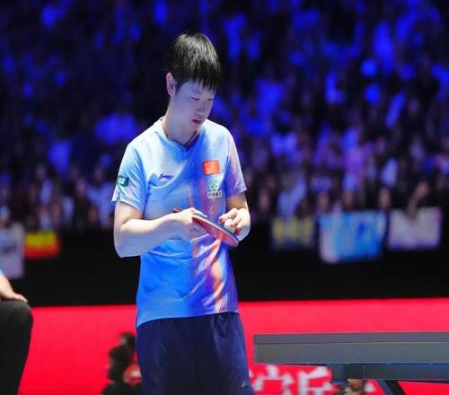 決賽第一局比賽,孫穎莎在1-1后連得5分,隨后又連續得分以11-2戰勝王曼昱,大比分1-0領先。