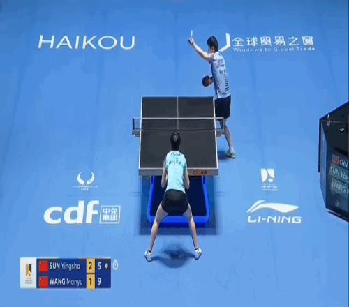 決勝局,雙方各得一分后,王曼昱的拉拍失誤、孫穎莎反拉大斜線得分以及王曼昱接球擦網飛出界,讓孫穎莎將分差擴大到4-1。相似的情況,在雙方打到8-5之后再度發生,孫穎莎反手相持階段下網、正手對拉過程中轉反手出臺,讓王曼昱將比分追到7-8。接下來的一分,雙方產生爭議,裁判確認王曼昱得分,8-8。