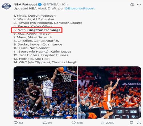 根據美媒《露天看臺》的選秀預測,弗萊明斯的確是第五順位,而他們則預測籃網抽中第五順位,籃網選中這位身高1.93米的頂級控球后衛。