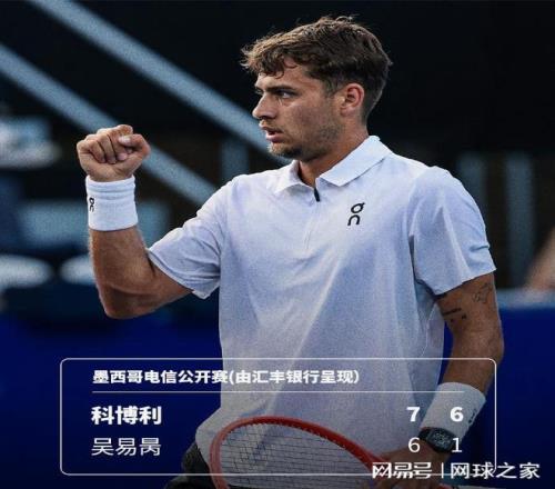 我們再來關注男子賽場。北京時間今晨,ATP500墨西哥阿卡普爾科站展開單打八強戰。率先登場的中國球員吳易昺首盤錯失2個盤點,全場拿到了8個破發點可惜都沒有兌現,最終以6-7(4) 1-6不敵5號種子、意大利新星科博利,遺憾無緣四強。