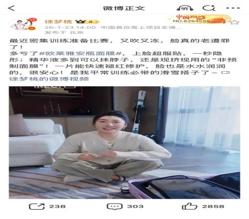 蘇翊鳴“呼吁預(yù)防HPV”的科普項目、徐夢桃與歐萊雅的合作之所以能引發(fā)高討論,前提就是選對了人,一位是新生代小將拿下中國首金,一位是老將霸氣衛(wèi)冕冠軍。雙方在場內(nèi)場外均于高點爆發(fā),也帶動相應(yīng)內(nèi)容的破圈。
